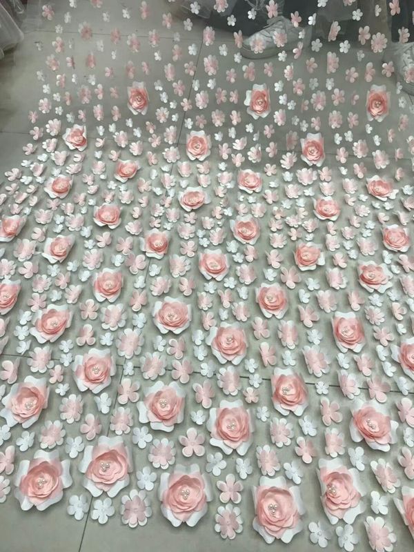 3D Embroidered Flower Beaded Lace Fabrics Fashion Evening Gown Dress Mesh Fabric